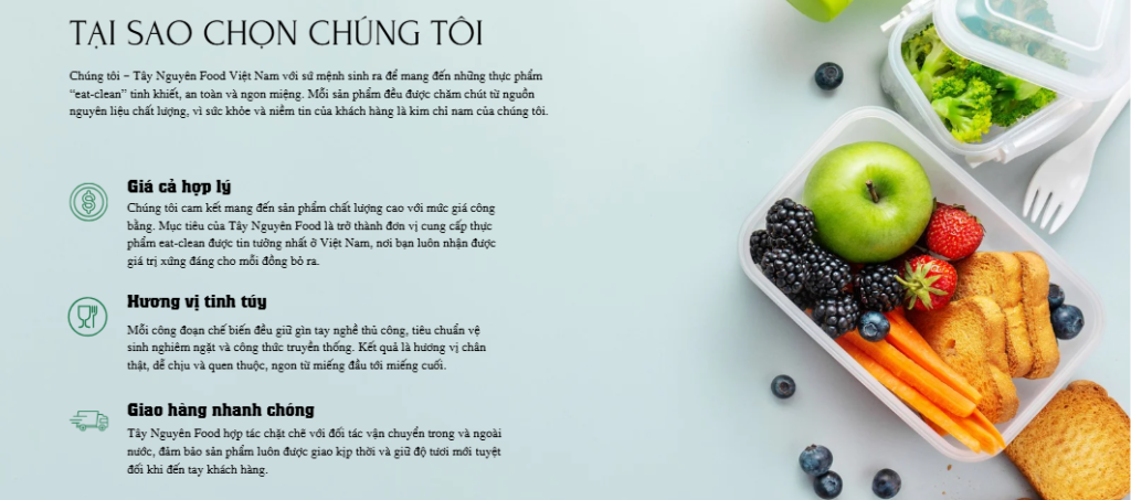 Với tôn chỉ “Ăn sạch – Sống khỏe”, Tây Nguyên Food – Việt Nam cam kết mang đến cho khách hàng những thực phẩm eat clean chất lượng tốt nhất với nguyên liệu 100% từ tự nhiên an toàn cho mọi đối tượng sử dụng. Thứ 2 – Thứ 7: 9:00 AM – 18:00 PM
